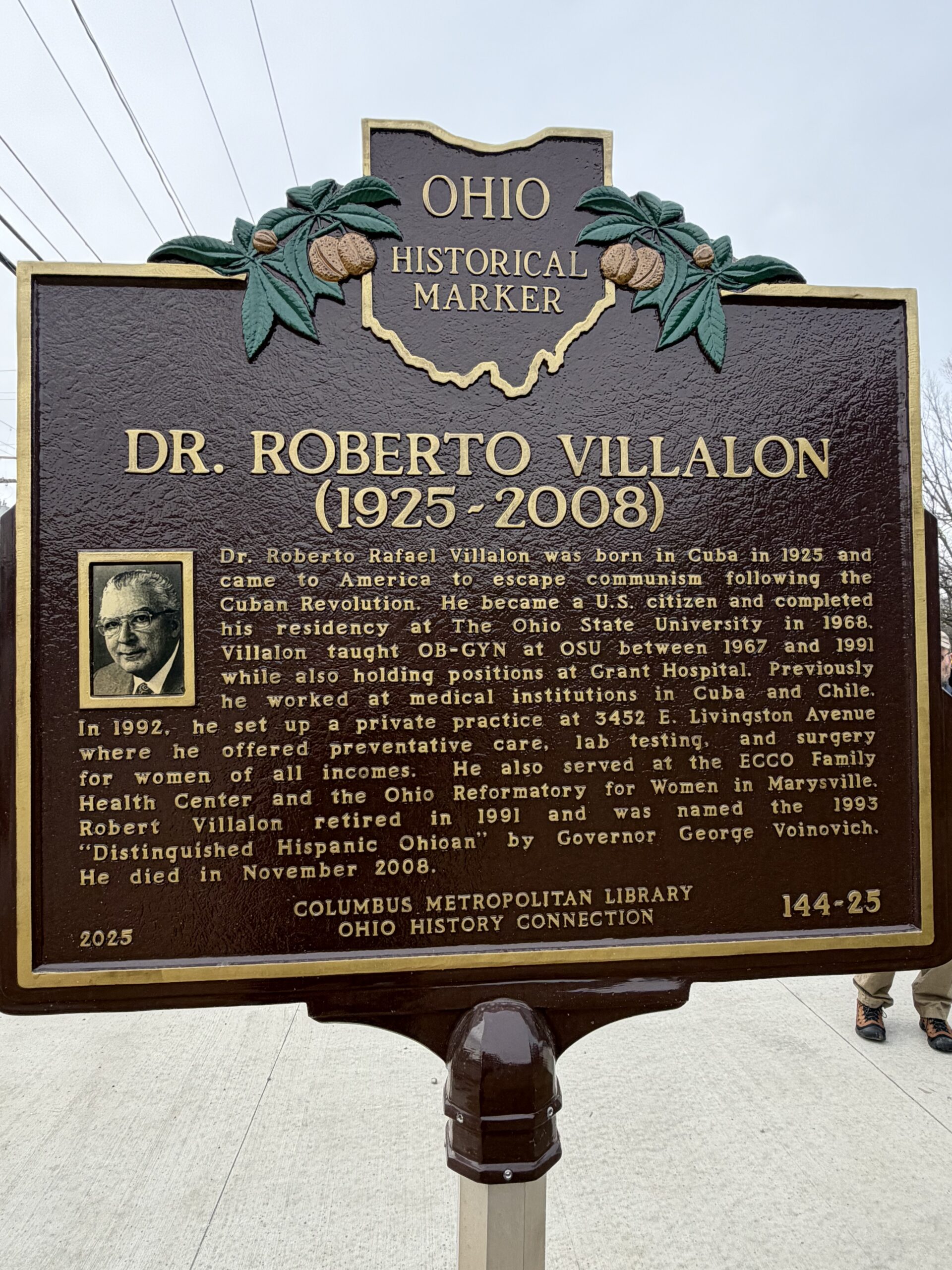 Side B: Dr. Roberto Rafael Villalon was born in Cuba in 1925 and came to America to escape communism following the Cuban Revolution. He became a U.S. citizen and completed his residency at The Ohio State University in 1968. Villalon taught OB-GYN at OSU between 1967 and 1991 while also holding positions at Grant Hospital as well as medical institutions in Cuba and Chile. In 1992, he set up a private practice at 3452 E. Livingston Avenue where he offered preventative care, lab testing, and surgery for women of all incomes. He also volunteered his services to the ECCO Family Health Center and the Ohio Reformatory for Women in Marysville. Robert Villalon retired from private practice in 1991 and was named the 1993 “Distinguished Hispanic Ohioan” by Governor George Voinovich. He died in November 2008.