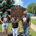 Side B: New Black families arrived in Marion following World War II, as part of the longer Great Migration. Fleeing anti-Black violence in the South and drawn to good-paying industrial jobs, they settled in temporary dwellings on the West Side, called “Shantytown.” Black churches such as Mt. Zion Missionary Baptist Church (1919) and King’s Temple Apostolic Church (1944) became West Side hubs of spiritual, cultural, economic, political, and mutual aid organizing. These congregations called for an end to residential segregation in Marion. A Black business district flourished along Cass Avenue and sponsored the neighborhood’s “Shantytown” softball team. West Side residents and dignitaries dedicated Martin Luther King Jr. Memorial Park in 1987. The new park honored both Rev. Dr. King and the West Side’s legacy of Civil Rights and racial justice organizing.