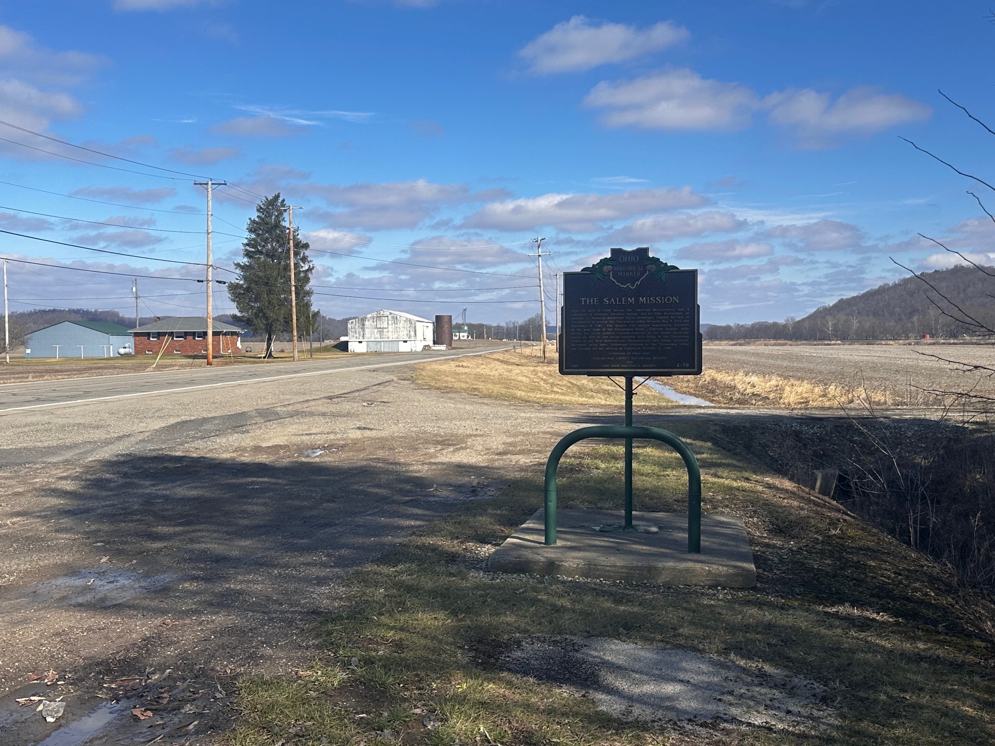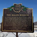Side A: Here, on April 6, 1780 during the American Revolutionary War, a contingent of Delaware Christian Indians, led by John Heckwelder, an assistant to Moravian missionary David Zeisberger, founded the last of five missions to occupy the Tuscarawas Valley between May 3, 1772 and September 8, 1781. The mission was located immediately adjacent to the west bank of the Tuscarawas River. Eighteen months later, British led Indian soldiers forcibly removed to the Upper Sandusky region all 400 of the Indian converts then living in the Tuscarawas Valley at the New Schoenbrunn, Gnadenhutten, and Salem missions. Seventeen years later, Zeisberger returned to the Tuscarawas Valley and founded his last mission at Goshen on October 4, 1798.