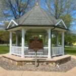 Side A: Mesopotamia Village District was listed in the National Register of Historic Places on December 24, 1974. Many consider it to be “the most unspoiled nineteenth century central green type of village in northeastern Ohio.” The district includes houses, commercial buildings, a town hall, churches, and a cemetery. Surrounding the 1600-foot-long public green these structures represent Greek Revival, Gothic Revival, Queen Anne, Italianate, and vernacular architectural styles constructed between 1820 and 1902. One of the oldest buildings in the district is the colonnaded Greek Revival commercial building at the southwest end of the green. Built in the 1820s for early resident Isaac Clark, it was operated as a store by F.C. Peck. Over the ensuing centuries it has served as a barber shop, post office, and an undertakers. (Continued on other side)