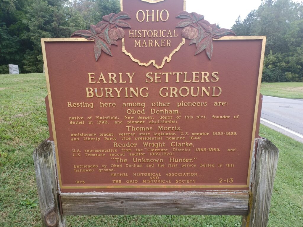 Resting here among other pioneers are: Obed Denham, native of Plainfield, New Jersey, donor of this plot, founder of Bethel in 1798, and pioneer abolitionist; Thomas Morris, antislavery leader, veteran state legislator, U.S. senator 1833-1839, and Liberty Party vice presidential nominee 1844; Reader Wright Clarke, U.S. representative from the Clermont District 1865-1869, and U.S. Treasury […]