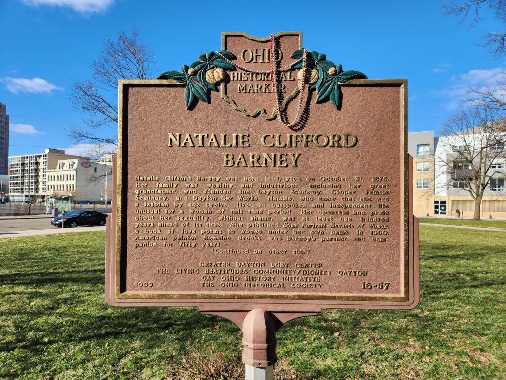 Natalie Clifford Barney was born in Dayton on October 31, 1876. Her family was wealthy and industrious, including her great grandfather who founded the Dayton Academy, Cooper Female Seminary, and Dayton Car Works. Natalie, who knew that she was a lesbian by age twelve, lived an outspoken and independent life unusual for a woman of […]